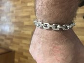 Полновесный браслет.		На текущей странице изображено фото мужского серебряного браслета якорного плетения с чернением. Мужским его в первую очередь делают размеры, да и, откровенно говоря, угловатые и несколько грубые формы «Якоря с гранями» в качестве браслета не часто пользуются спросом у девушек, хотя безусловно есть и такие.